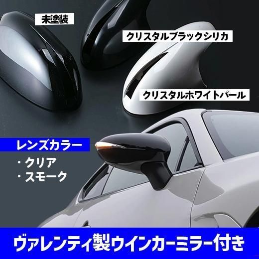 ※「ヴァレンティ製シーケンシャルドアミラーウインカー」は、カバーカラーがクリスタルホワイトパール/クリスタルブラックシリカ/未塗装の3色を、レンズカラーはクリア/スモークの2色をそれぞれ設定しています。